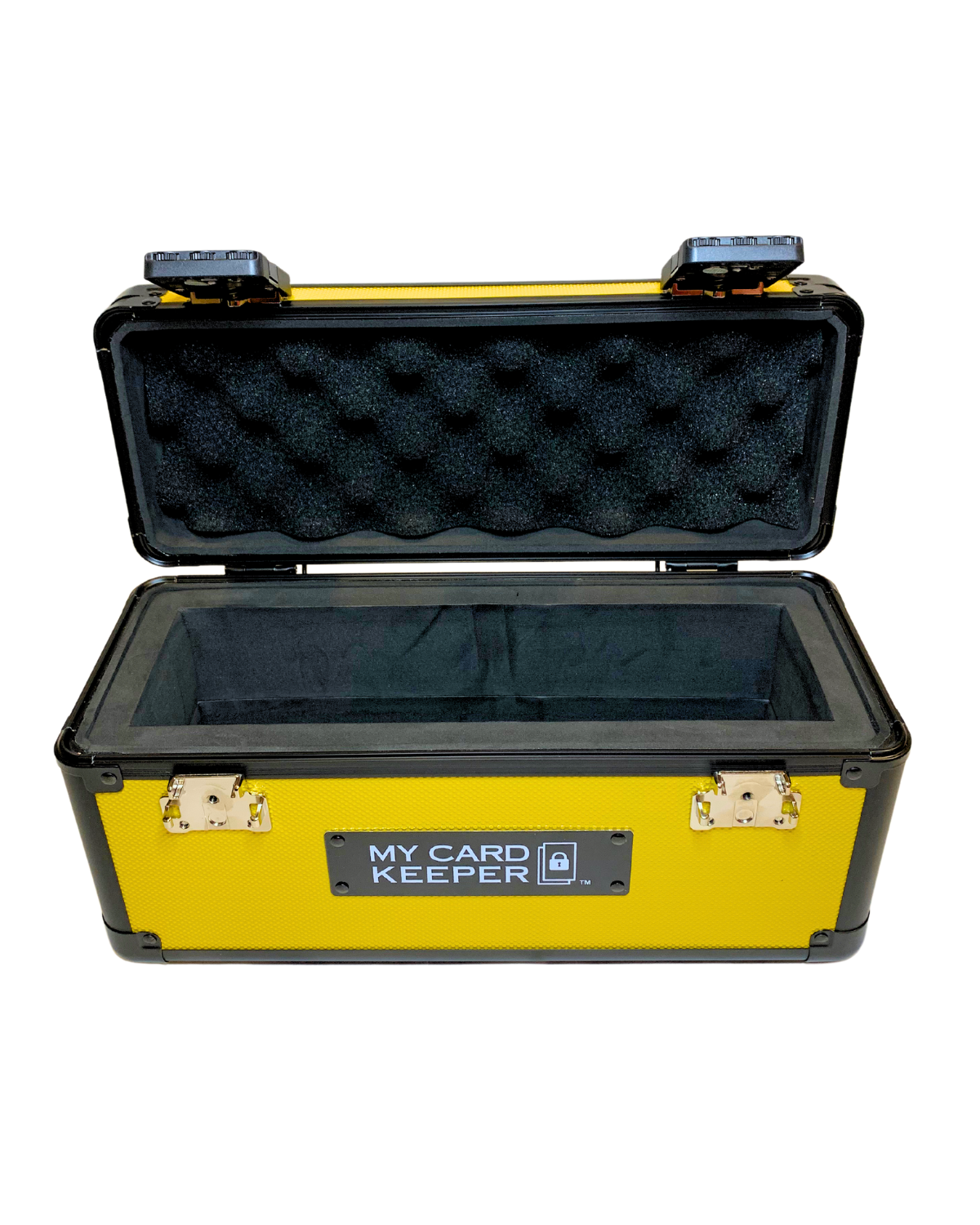 Keep your collection safe and secure with My Card Keeper cases. Whether you're traveling show to show or storing your personal collection, our cases are designed to provide the ultimate protection for your valuable cards. Crafted from high-quality, durable materials, each case features a snug fit and a robust exterior to shield your cards from damage, dust, and moisture. The sleek design and secure locking mechanism ensure that your collection remains intact and organized, no matter where you go. With My Card Keeper, you can have peace of mind knowing your cherished collectibles are always safe and in pristine condition.
